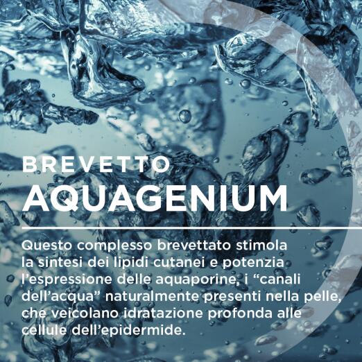 La tecnologia brevettata AQUAGENIUM+*stimola le acquaporine per ripristinare il flusso di idratazione, mentre l’Acido Ialuronico e la Glicerina aiutano la pelle a catturare e trattenere l'acqua.
