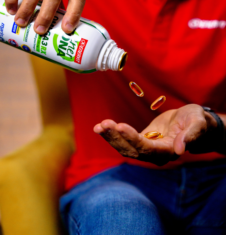 Gli Omega-3 (EPA e DHA) si prendono cura di cuore, cervello e vista e contribuiscono al mantenimento di normali livelli di trigliceridi nel sangue e una normale pressione sanguigna.