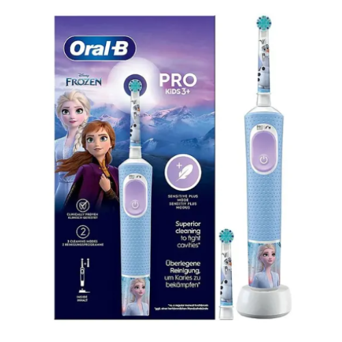 Spazzolino Elettrico Ricaricabile Oral-B Kids per bambini dai 3 anni in su. Offre la pulizia efficace e delicata di uno spazzolino Oral-B e il divertimento di Disney. Con l'esclusiva modalità delicata studiata per i bambini, questo spazzolino pulisce delicatamente denti e gengive dei più piccoli. Rimuove fino al 100% in più di placca rispetto ad uno spazzolino manuale tradizionale.